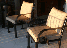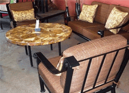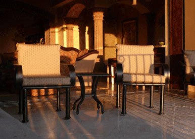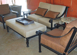 2" Round Tubing Frame 3" Flat Iron Arm 7" Cushions on Patio Seating and Poolside 3" Cushions on Dining Seating