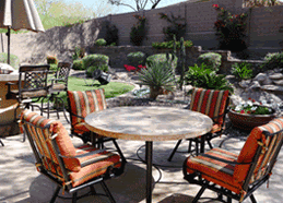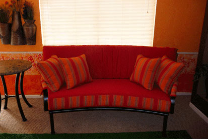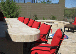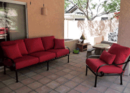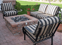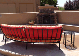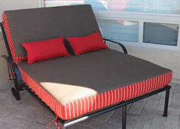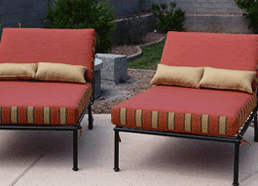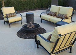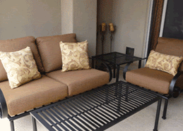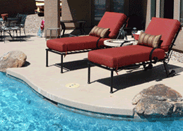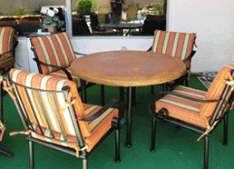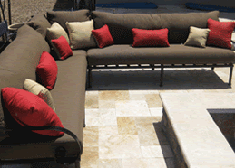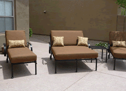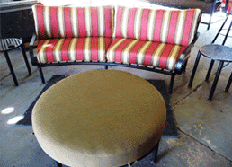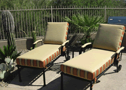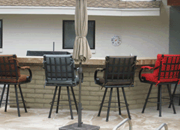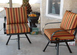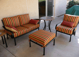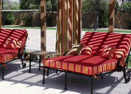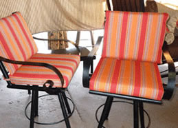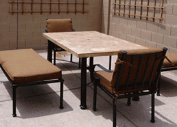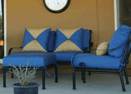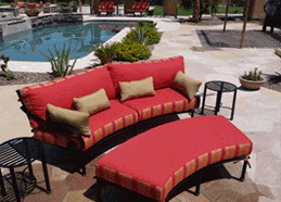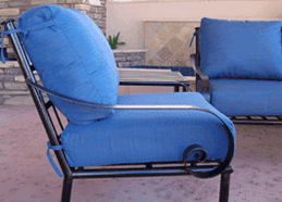 1 1/2" Round Tubing Frame 2" Flat Iron Arm 7" Cushions on Patio Seating and Poolside 3" Cushions on Dining Seating
